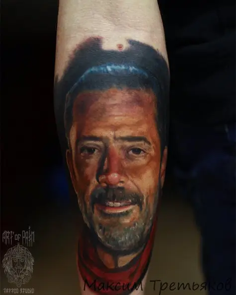 Татуировка мужская реализм на предплечье портрет мужчины 3917