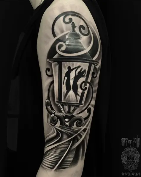 Татуировка мужская black&grey на плече фонарь и пара (Анастасия Юсупова) 3922