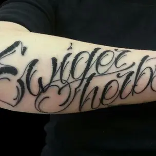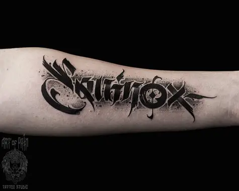 Татуировка мужская каллиграфия на предплечье слово 3929