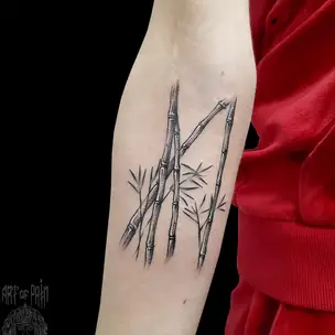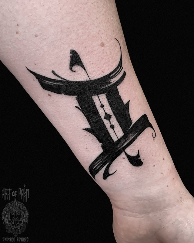 Татуировка мужская каллиграфия на предплечье иероглиф 3948