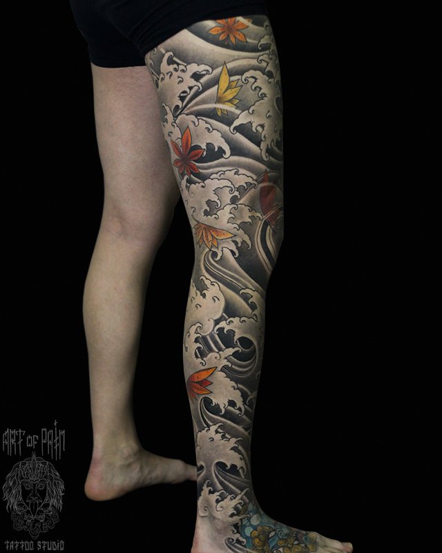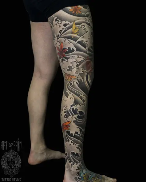 Татуировка мужская волны и череп в японском стиле 3988