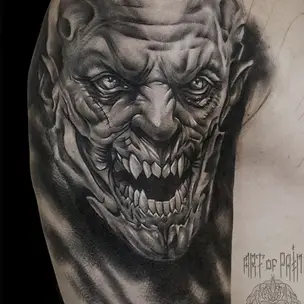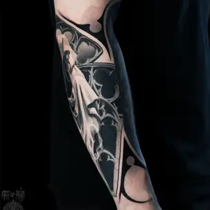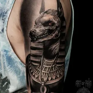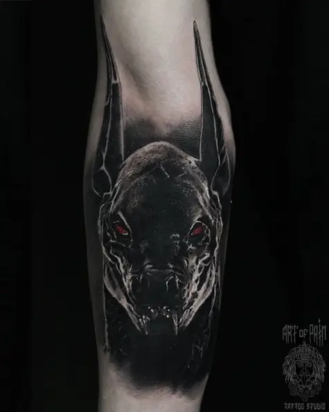 Татуировка мужская хоррор на предплечье Анубис с красными глазами (Александр Pusstattoo) 4000