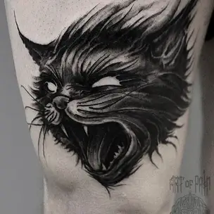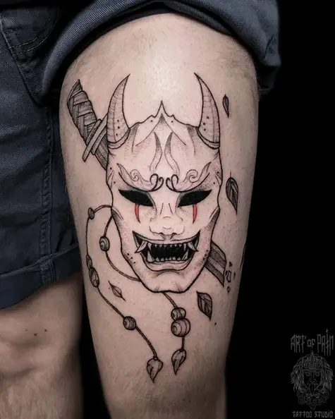 Татуировка мужская графика на бедре маска и кинжал (Мария Котова) 4227