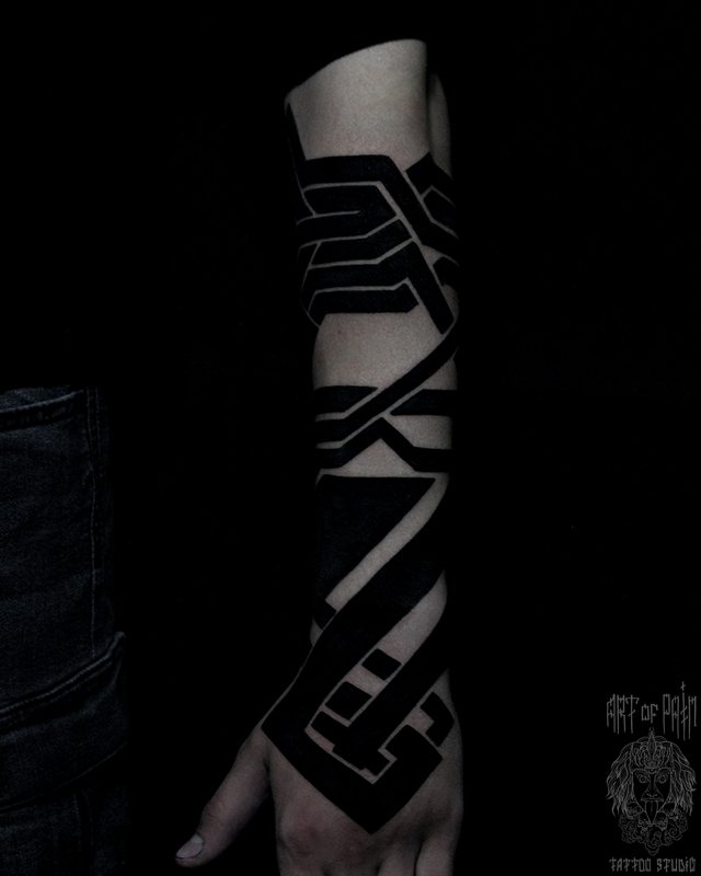 Татуировка мужская графика на предплечье узор blackwork (Юрий Хандрыкин) 4268