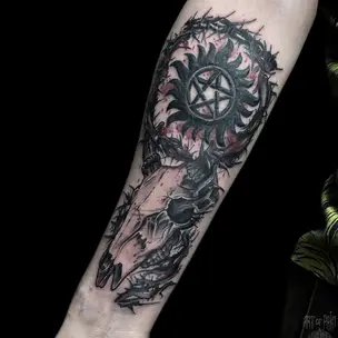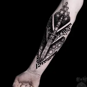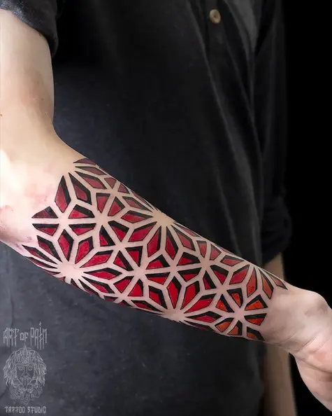 Татуировка мужская орнаментал на предплечье цветной узор 4278