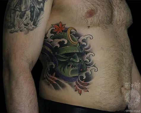 Татуировка мужская япония на животе маска 4279