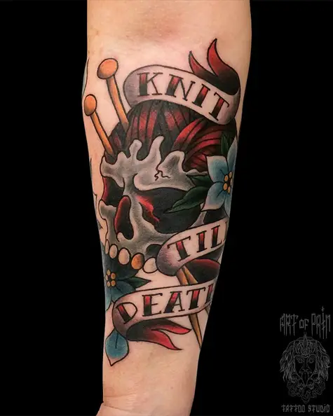 Татуировка мужская олд скул на предплечье череп 4301