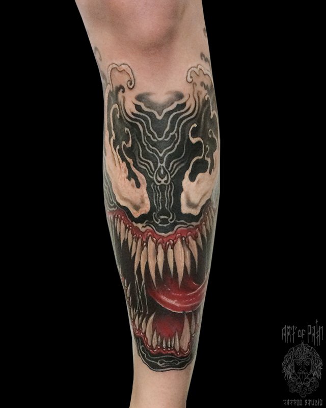 Татуировка мужская нью-скул на голени веном 4308