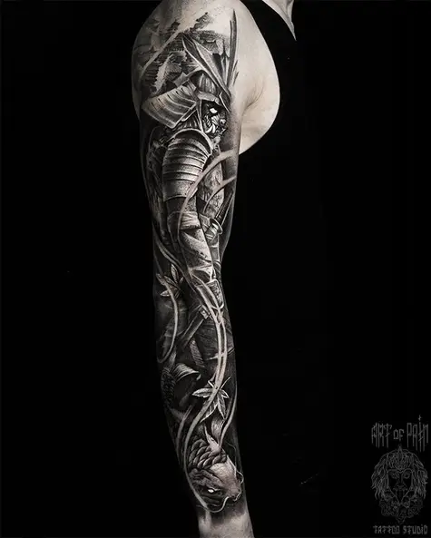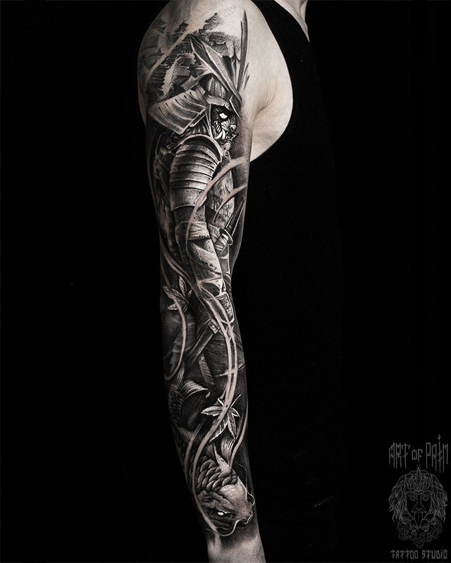 Татуировка мужская реализм тату-рукав самурай и карп (Слава Tech Lunatic) 4327