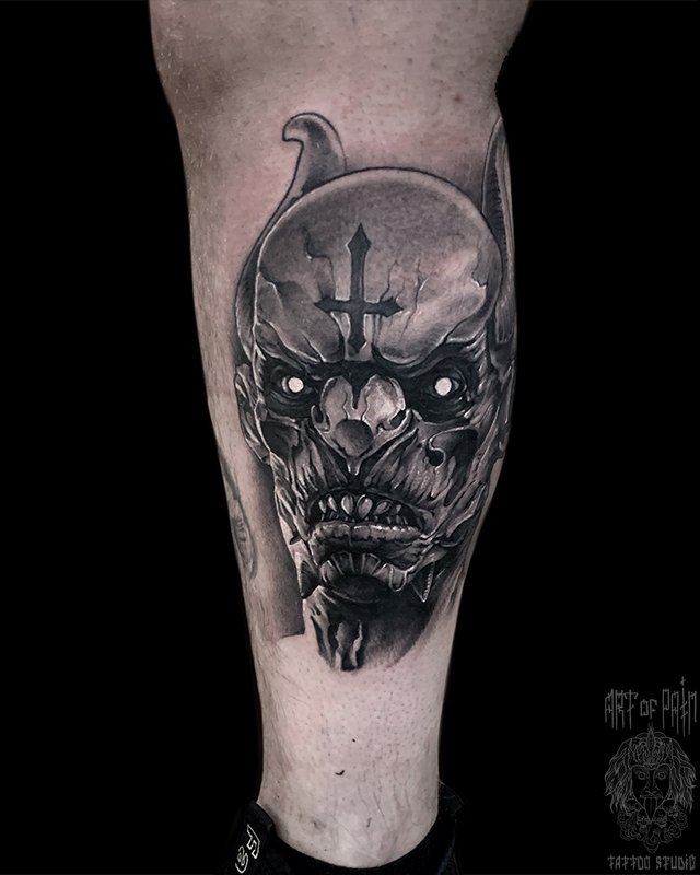 Татуировка мужская хоррор на голени орк 4352