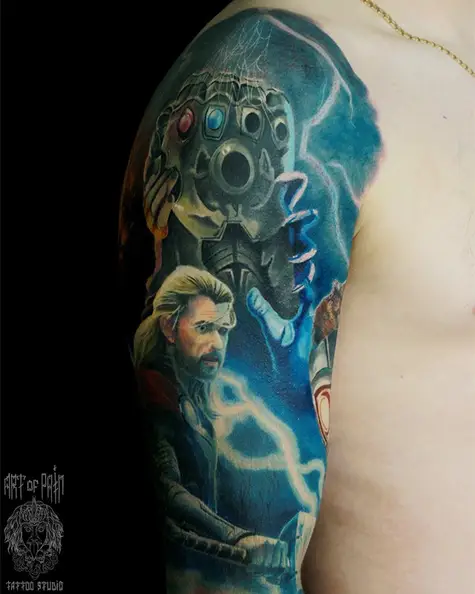 Татуировка мужская реализм на плече марвел Тор 4368
