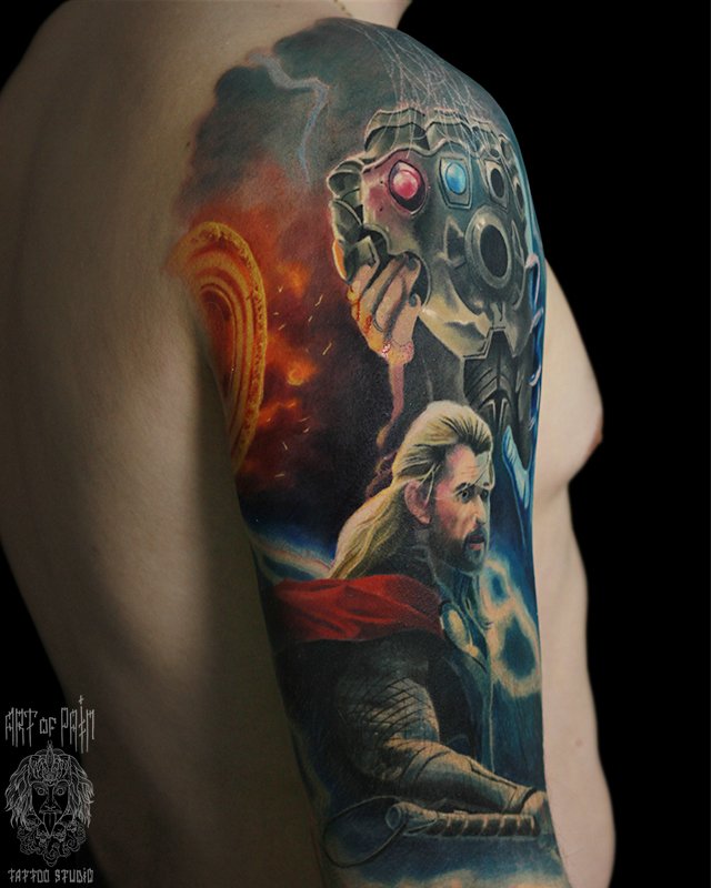 Татуировка мужская реализм на плече марвел Тор (Александр Pusstattoo) 4369