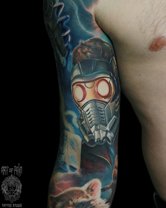 Татуировка мужская реализм на руке звездный лорд 4370