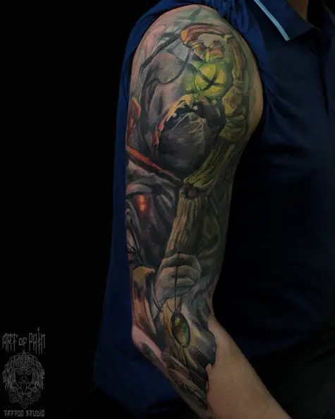 Татуировка мужская реализм на плече фэнтези персонаж 4378