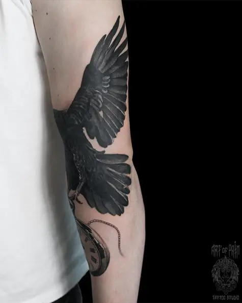 Татуировка мужская реализм на руке крыло ворона (Александр Pusstattoo) 4379