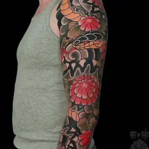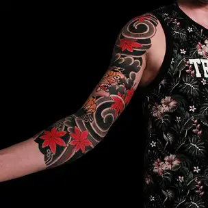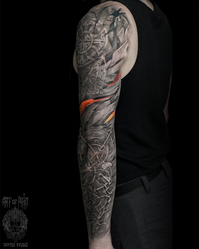 Татуировка мужская реализм тату-рукав орнамент, пламя, земля (Александр Pusstattoo) 4383
