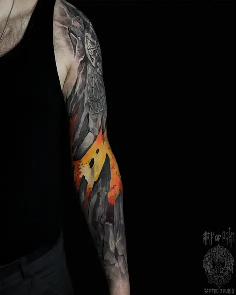Татуировка мужская реализм тату-рукав пламя, земля 4385