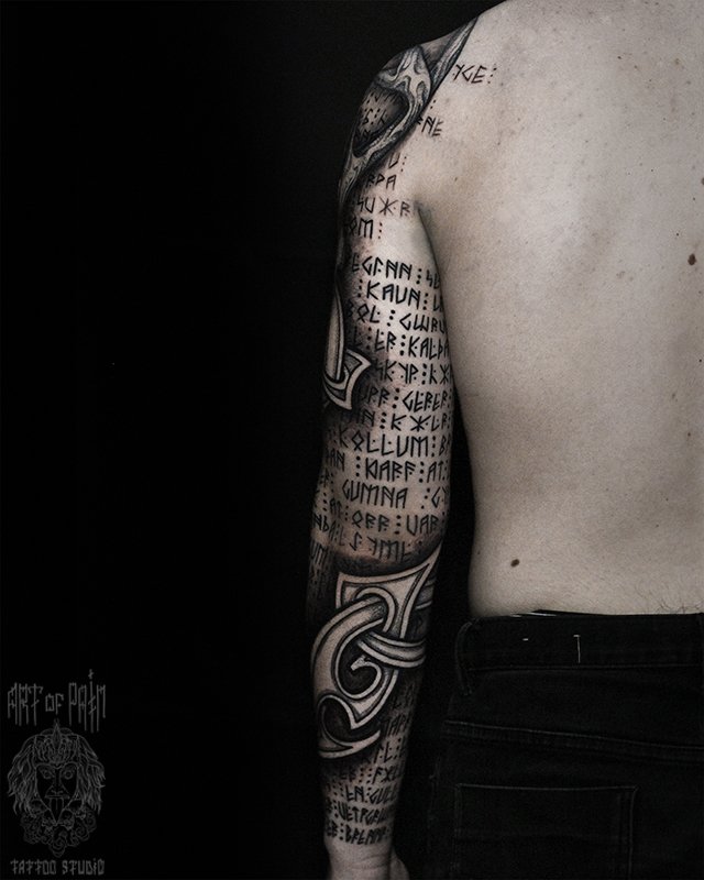 Татуировка мужская графика тату-рукав руны (Юрий Хандрыкин) 4428