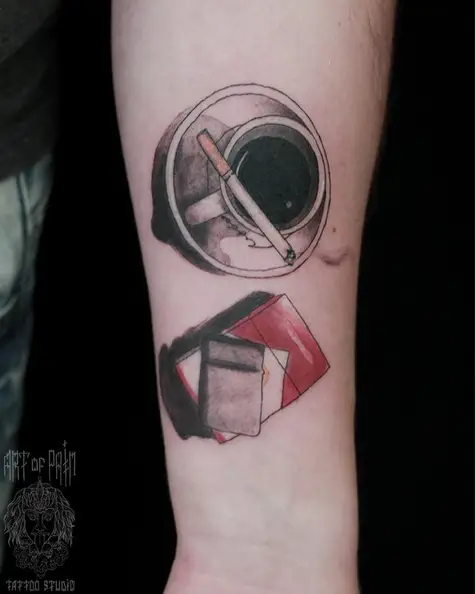 Татуировка мужская графика на предплечье кофе и сигареты (Анастасия Родина) 4464