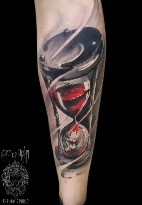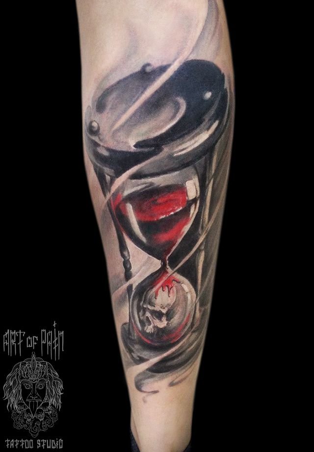 Татуировка мужская акварель на икре песочные часы 449