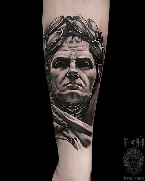 Татуировка мужская реализм на предплечье портрет Цезаря 4555