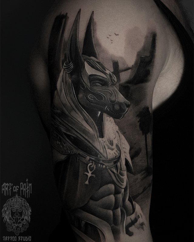 Татуировка мужская реализм на плече Анубис (Анастасия Юсупова) 4565