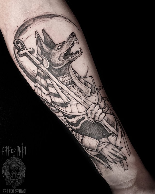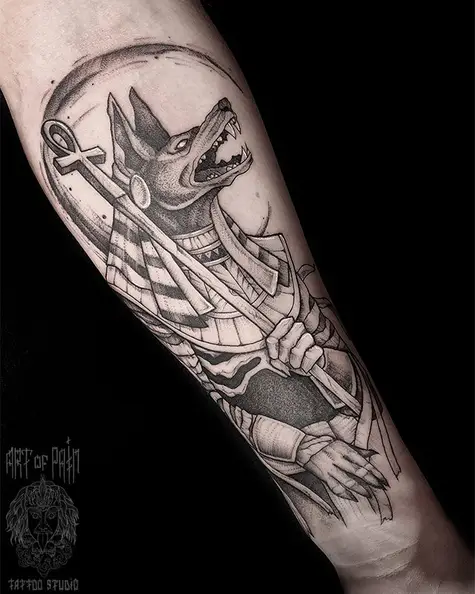 Татуировка мужская графика на предплечье Анубис и Анх (Мария Котова) 4574