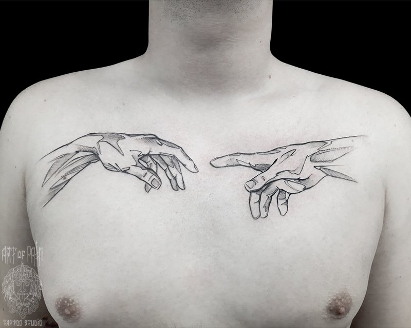 Татуировка мужская графика на груди руки 4586