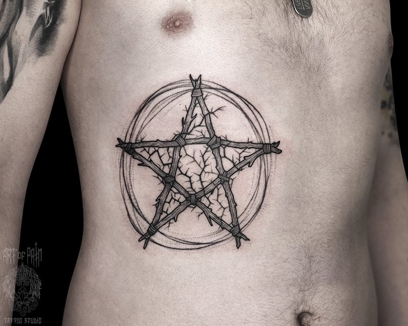 Татуировка мужская графика на боку звезда из веток 4614