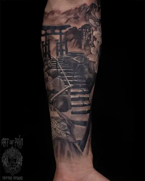 Татуировка мужская реализм на предплечье лестница (Вячеслав Плеханов) 4643