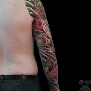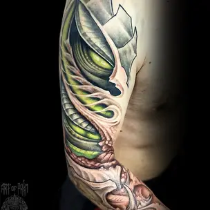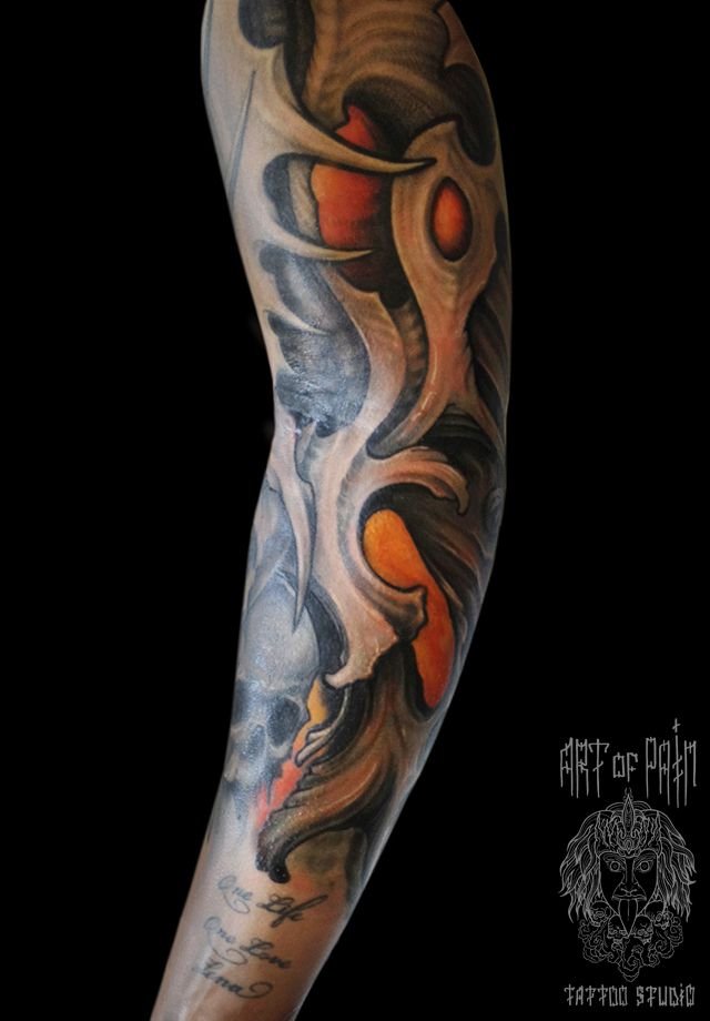 Татуировка мужская биомеханика рукав череп 466
