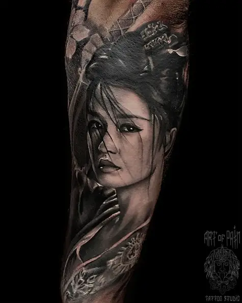 Татуировка мужская реализм на предплечье девушка гейша (Вячеслав Плеханов) 4664