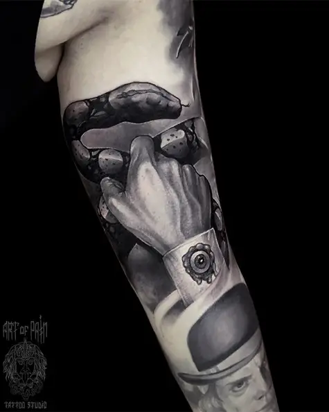 Татуировка мужская реализм на руке рука и змея 4670