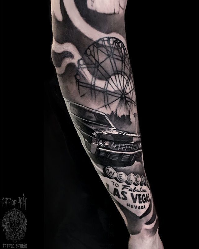 Татуировка мужская реализм на предплечье Лас-Вегас 4675