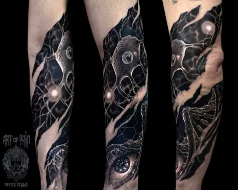 Татуировка мужская реализм на предплечье днк, глаз, нейроны (Вячеслав Плеханов) 4698