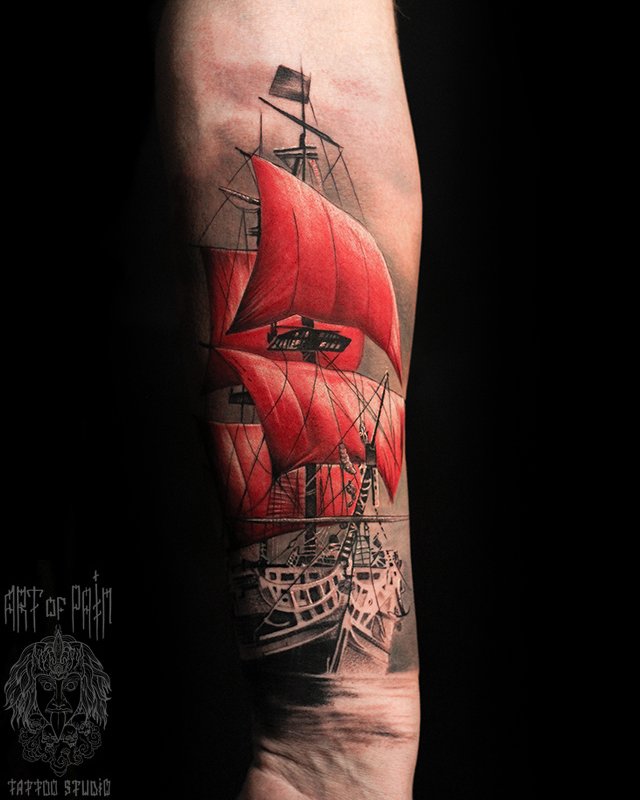 Татуировка мужская реализм на предплечье Алые Паруса (Слава Tech Lunatic) 4699