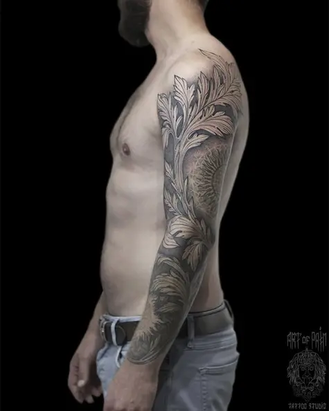Татуировка мужская графика тату-рукав растения и орнамент (Надежда Полякова) 4757