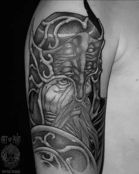 Татуировка мужская графика на плече воин (Николай Орф) 4841