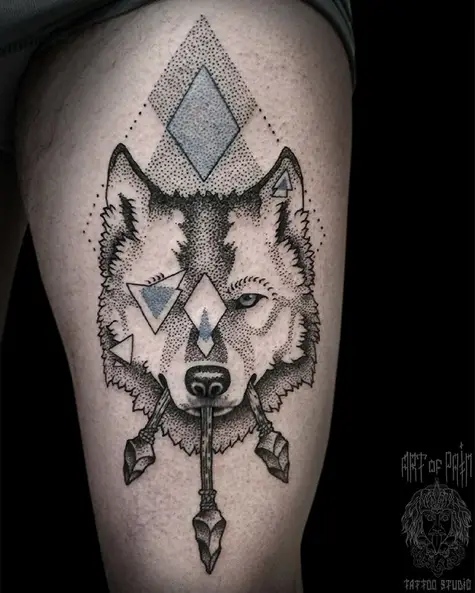 Татуировка мужская графика на бедре волк (Николай Орф) 4842
