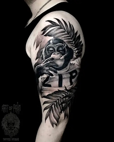 Татуировка мужская реализм на плече обезьяна 4863