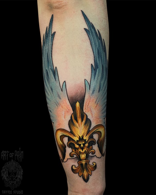 Татуировка мужская нью-скул на предплечье крылья 4936