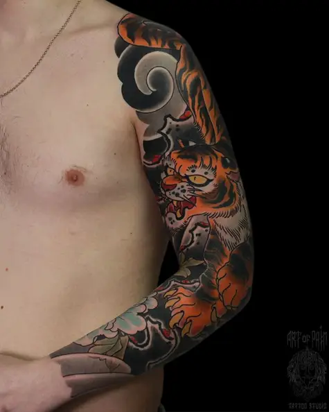 Татуировка мужская япония тату-рукав тигр 4952