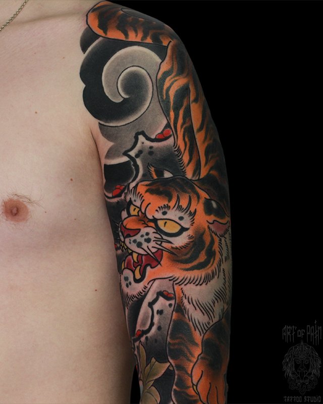 Татуировка мужская япония на плече тигр 4953