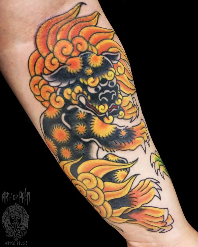 Татуировка мужская япония на предплечье лев 4973