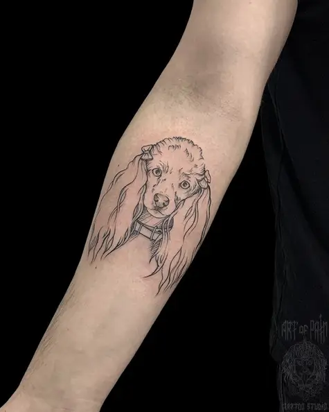 Татуировка мужская графика на предплечье собака 4977