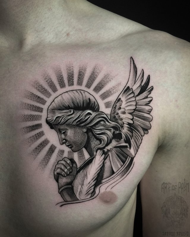 Татуировка мужская чикано на груди ангел (Анастасия Юсупова) 4992