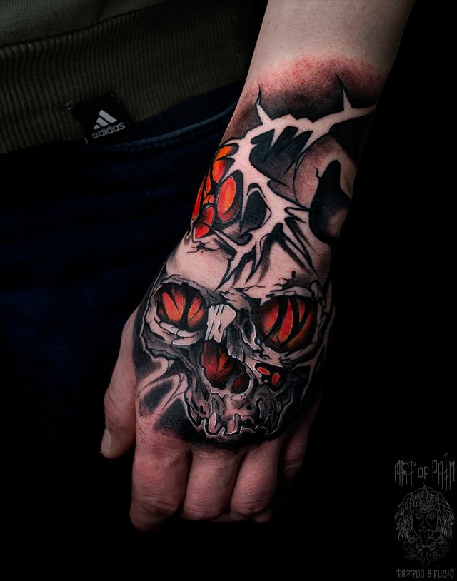 Татуировка мужская нью-скул на кисти череп 5052