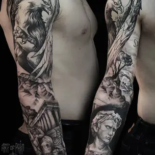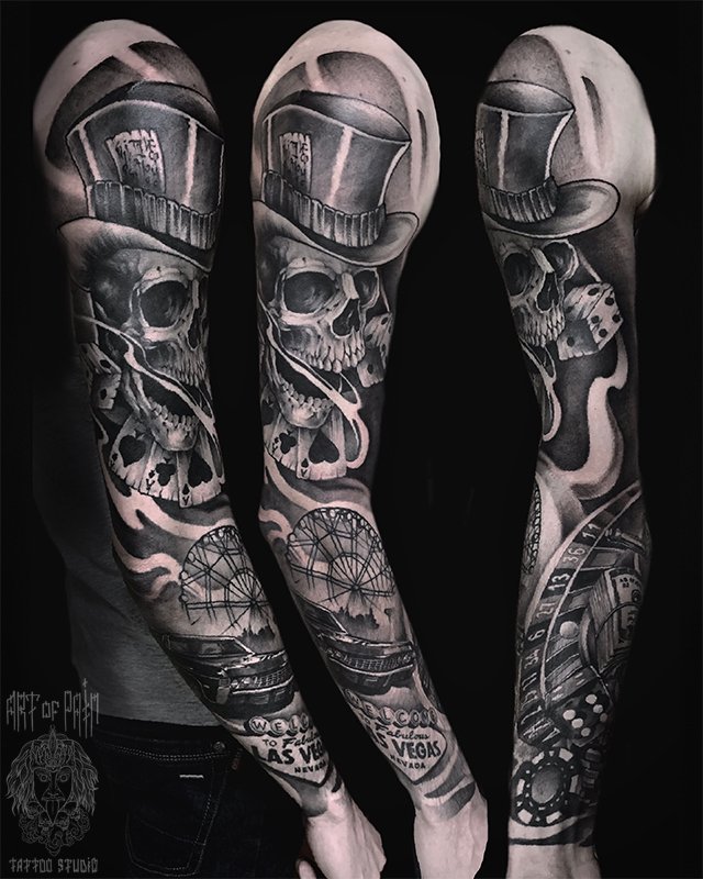 Татуировка мужская реализм тату-рукав череп, Лас-Вегас 5081