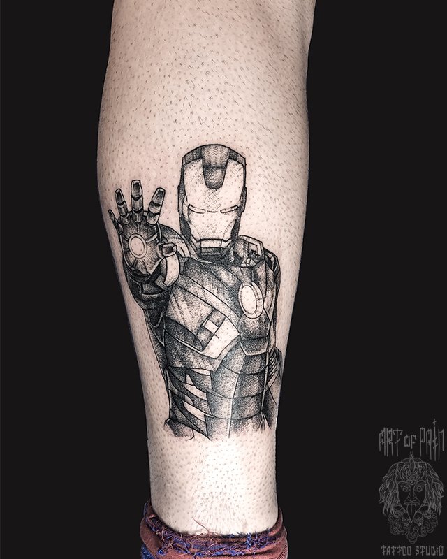 Татуировка мужская графика на голени железный человек (Мария Котова) 5107