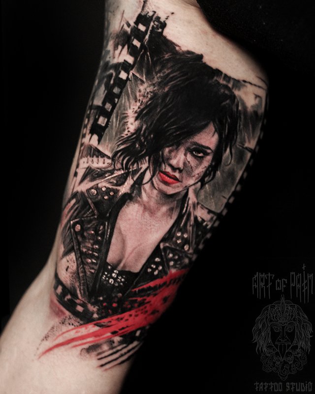 Татуировка мужская треш полька на руке девушка (Слава Tech Lunatic) 5138